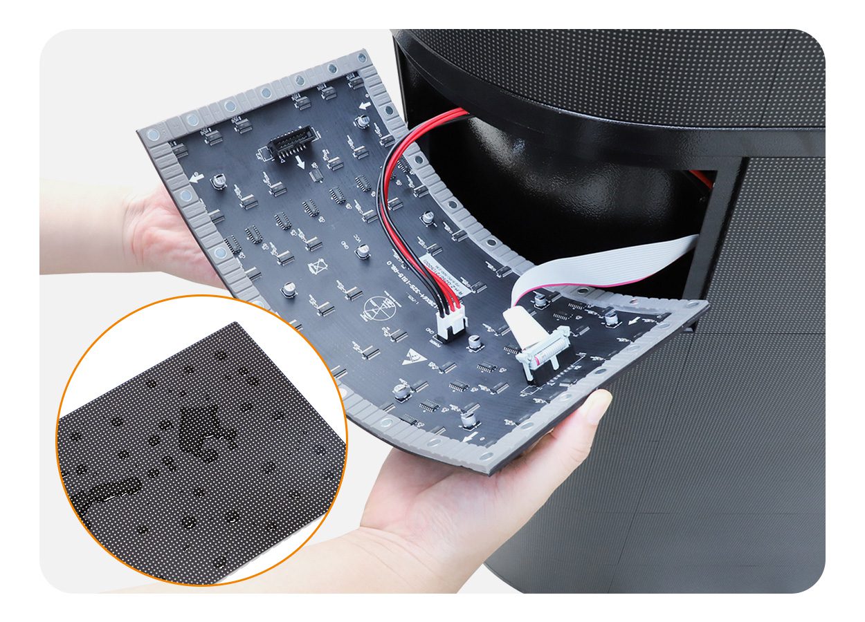 When the EA-FD Front Desk LED Display experiences a malfunction with a single LED or needs cleaning, there's no need to disassemble the entire screen or move the front desk. Simply open the module from the front and replace the LED unit directly. This design simplifies the maintenance process.