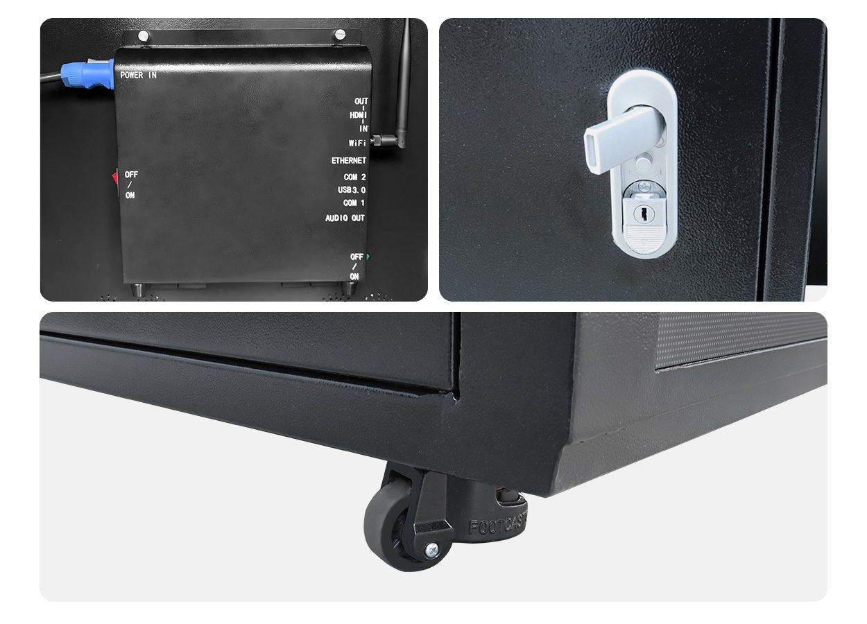 This LED display is designed with high-quality casters for easy mobility. You can easily push the display from one position to another, whether for adjustments or reconfiguration, making operations simple and quick, avoiding the hassle of moving heavy equipment.