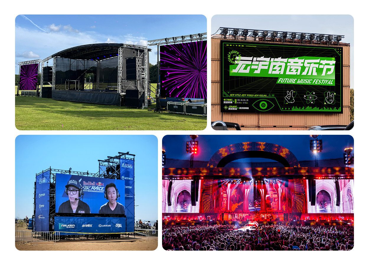 EA576H1 stands out for its extraordinary display effect. It combines convenience and flexibility, supports double-sided maintenance, has integrated connections to simplify installation, and can be easily adjusted into an arc shape. It is the preferred solution for temporary LED displays in multiple scenarios such as music festivals, advertising displays, and exhibitions.
