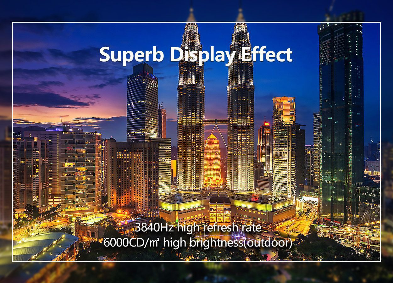 EA960R4 Advertising LED Display has a wide range of application scenarios, including commercial plazas, pedestrian streets, stage performances, etc. Whether it is commercial promotion, information display or artistic performance, the EA960R4 display can do it perfectly.